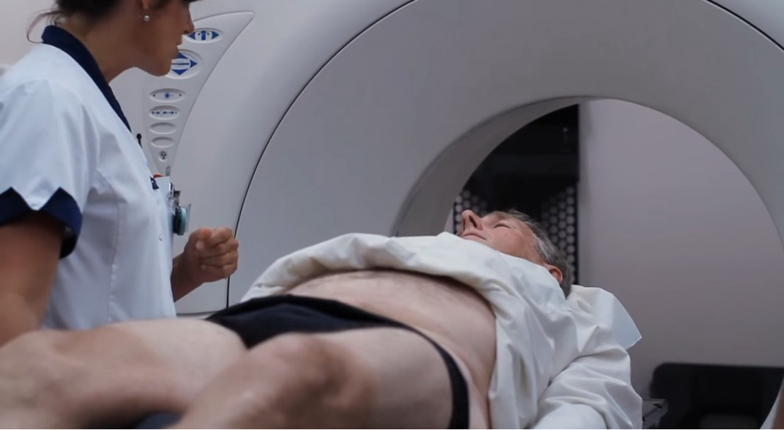 - Daarna gaat u op de behandeltafel liggen. De laboranten helpen u hierbij. Zij controleren wie u bent door uw geboortedatum te vragen en naar uw foto te kijken.